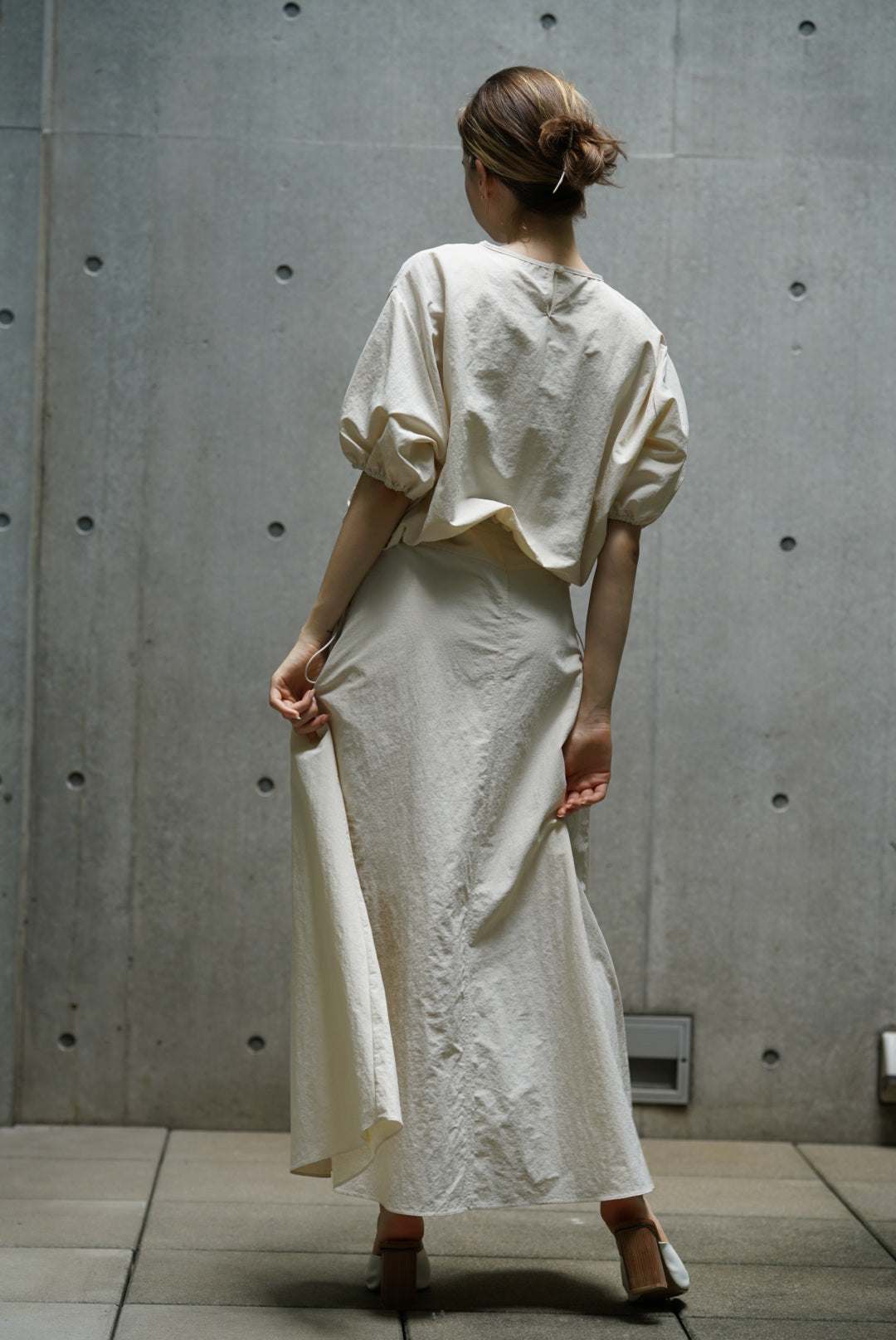 ・セットアップでの着用はもちろん、ブラウスとスカートを別々にスタイリングしてもそれぞれ魅力を引き立てます。