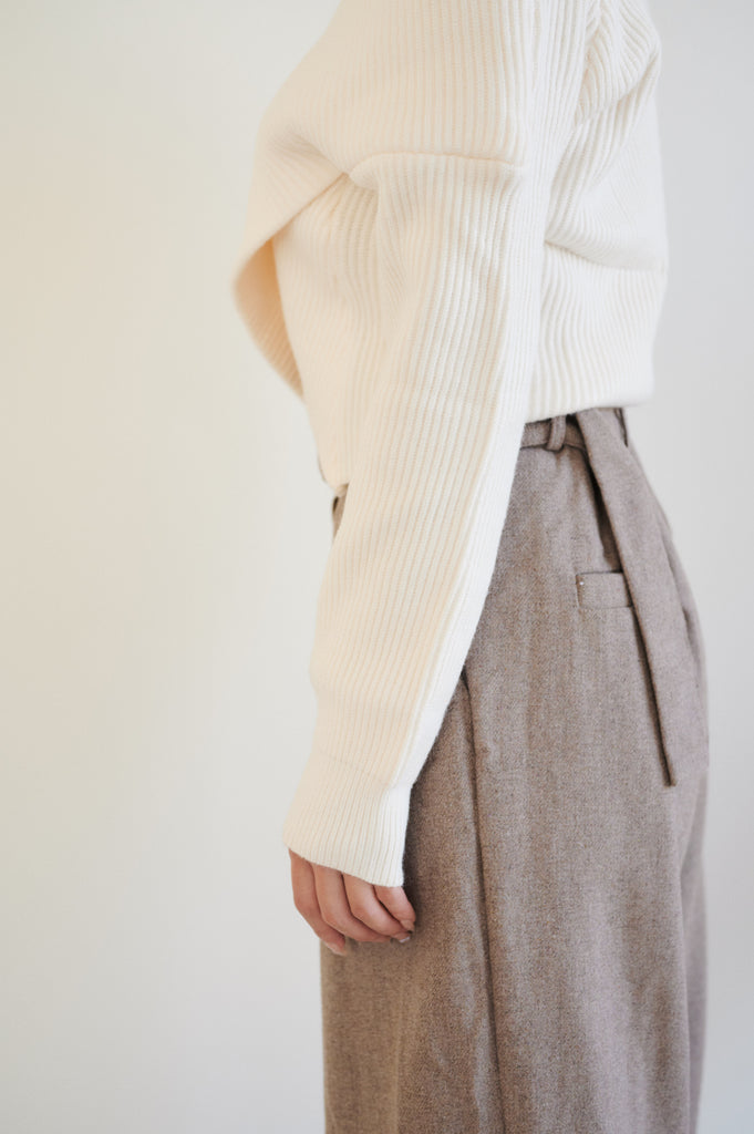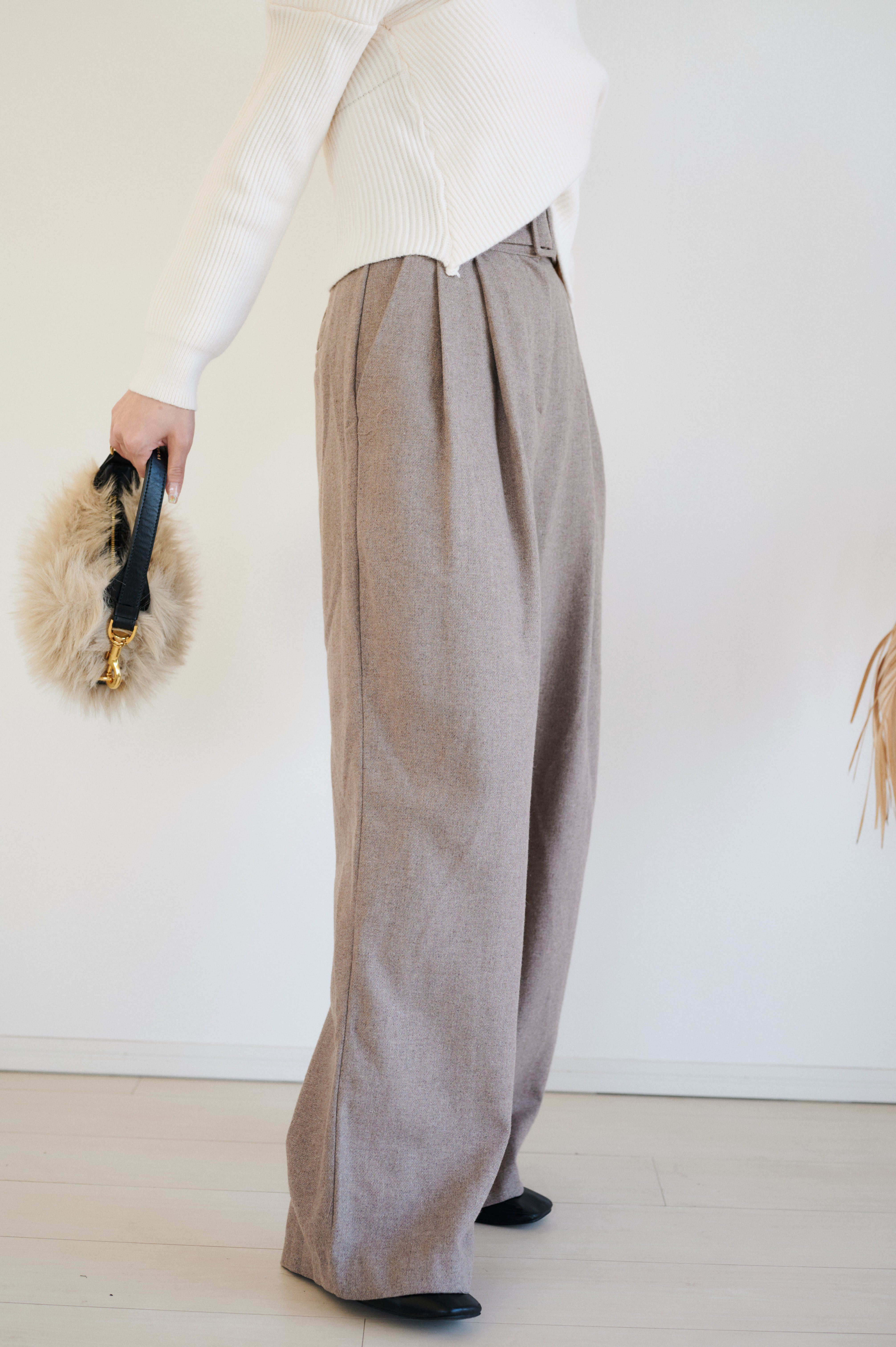 ・ウエストのタックとストレートシルエットが、スタイルアップ効果を演出。