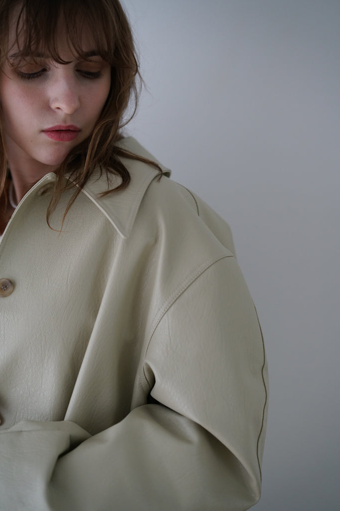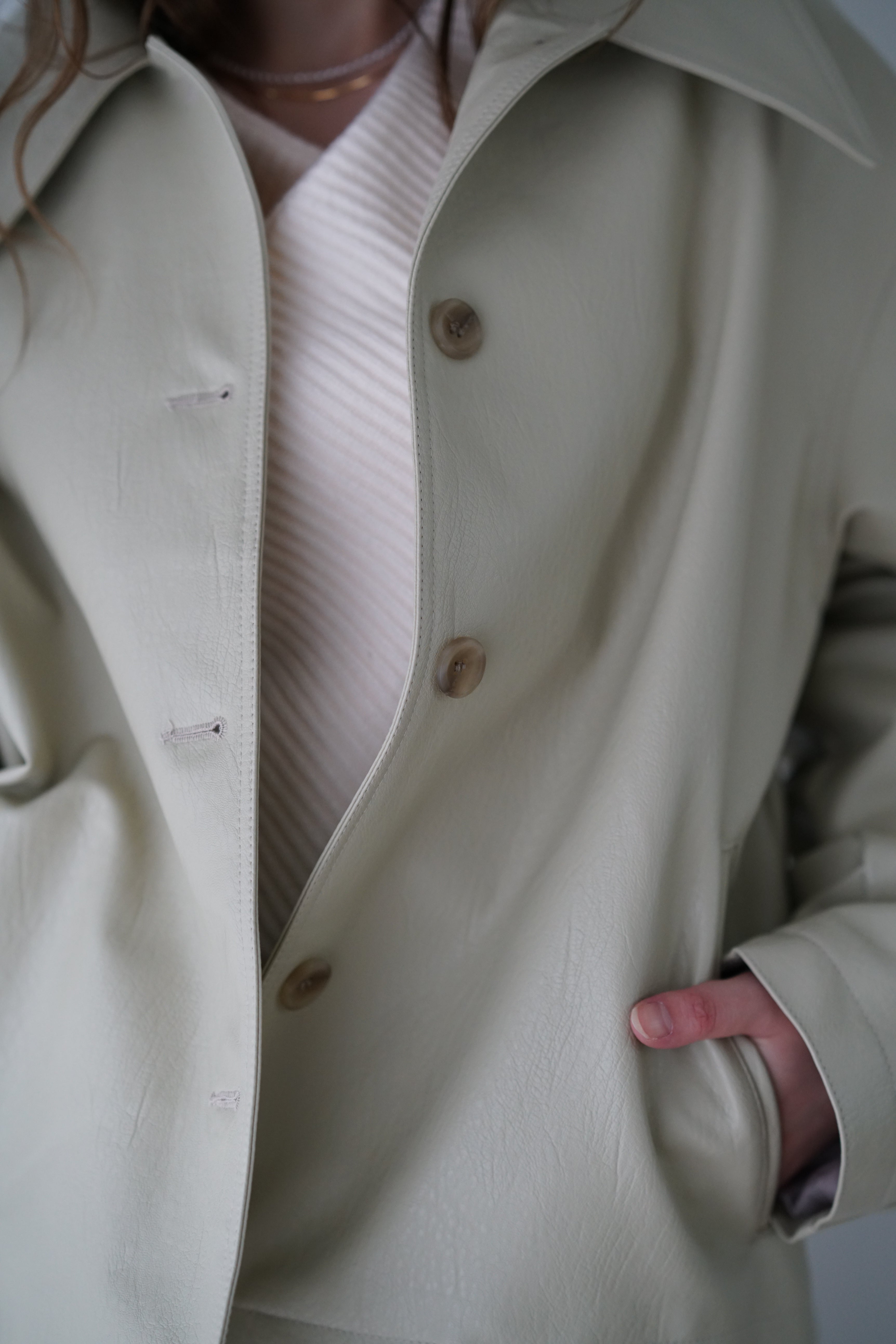 ・トレンド感溢れるピスタチオカラーのレザージャケットが登場。