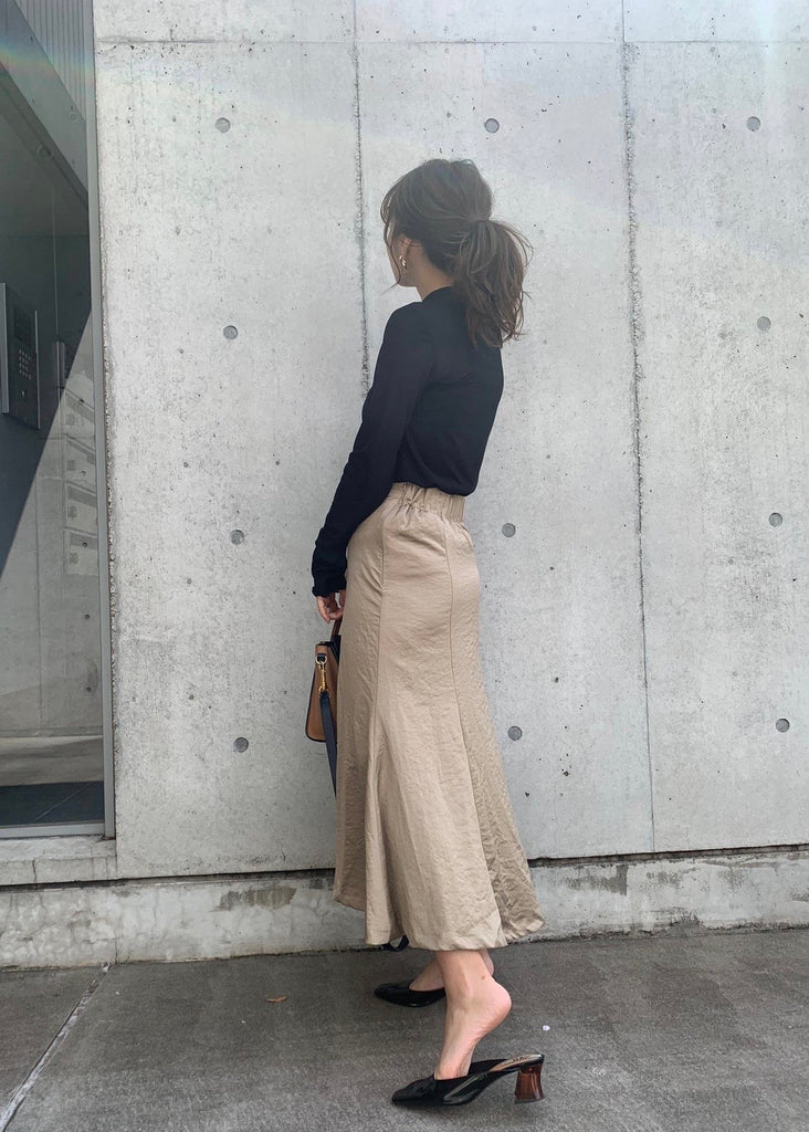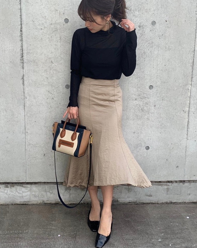 ・ブラウスやジャケットをプラスすれば、きちんと感のある上品スタイルに。