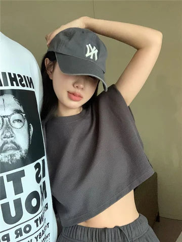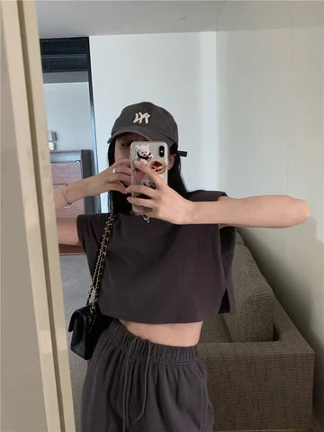 ・クロップド丈のトップスは程よい肌見せが叶い、シンプルながら抜け感のある印象を演出します。