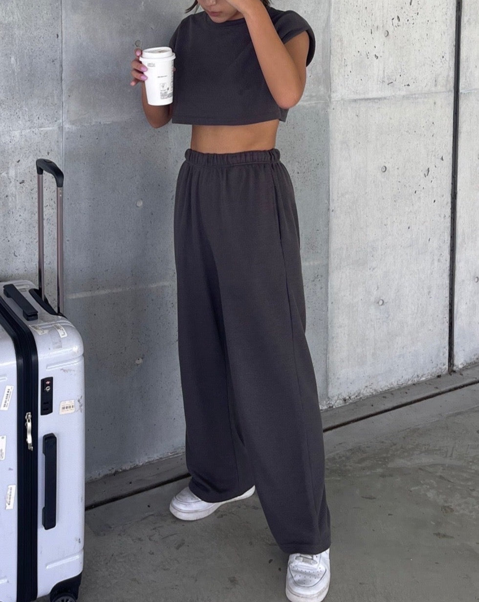 ・パンツはウエストゴム仕様で履き心地抜群、ゆったりとしたワイドシルエットが快適さと動きやすさを提供します。